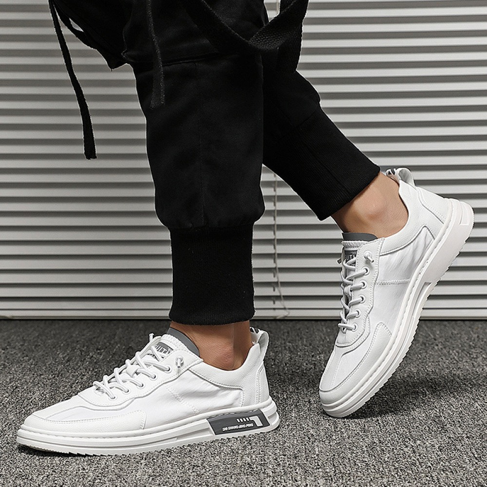 Autumn New Men's Shoes Leather Casual White Shoes Hot Style Trendy Lace Up Sports Shoes
