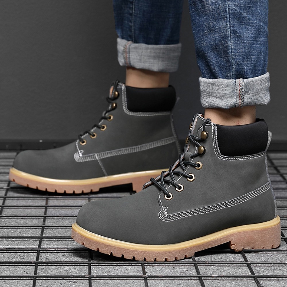 Men's Mid-Tube Boots Trend Middle-Top Martin Boots Autumn British Tooling Men's Shoes High-Top