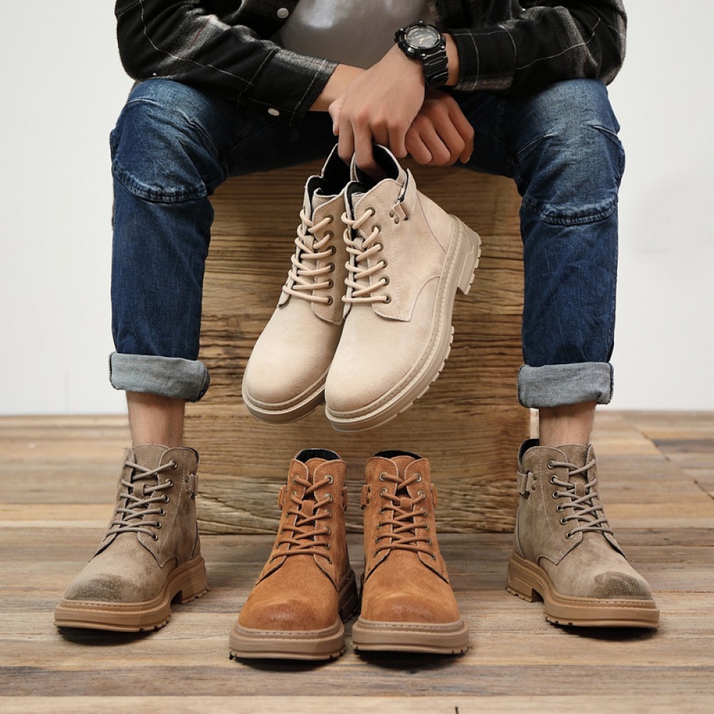 Men's Leather Martin Boots Winter Mens Boots Casual British Tooling Shoes Boots Men